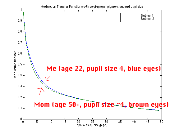 For example, here's a plot comparing the theoretical MTFs of my mother (Subject2) and I (Subject1):