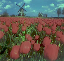 Again, the hybrid scheme produces the most decent results. The sky is a pretty blue, and the green stalks, overwhelmed by magenta in the original image, now appear distinctly green. The algorithm, unfortunately, performs disappointingly at bringing out the red tones of the tulips. It inherits this defect from the gray world assumption algorithm.