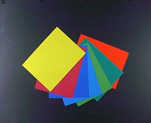 The images used to test the camera's color matching functions were rectangular matte paper swatches of uniform color produced by the Color-Aid Corp. Nineteen of the samples made up the gray scale measurements; they ranged from white to black. The other 96 samples were of differing colors.