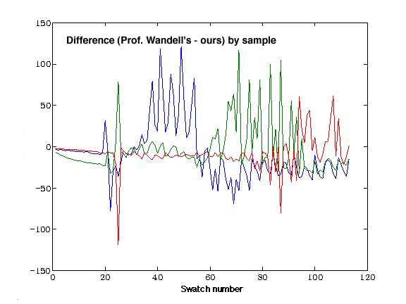 ones calculated by Professor Wandell's methods are based on fewer
