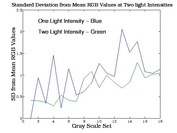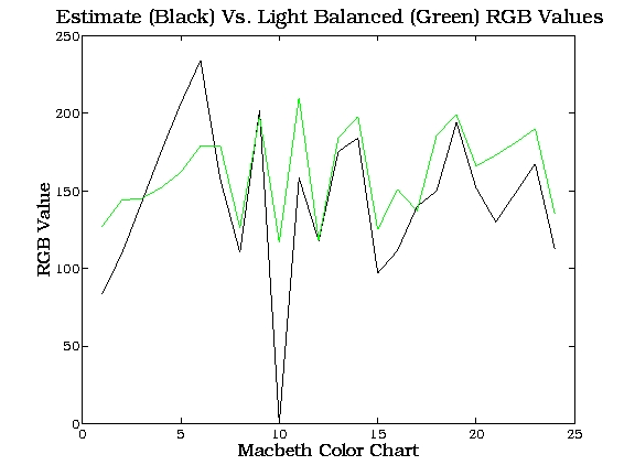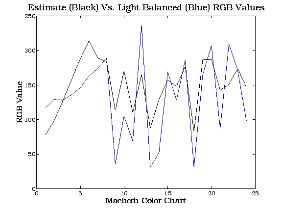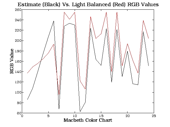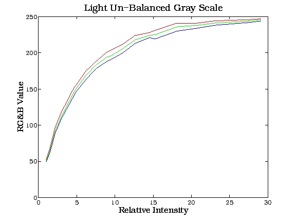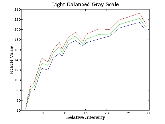 is plotted below for both actual and light-balanced measurements are tabulated