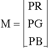 where PR, PG and PB are the full-scale power distributions of the red, green and blue guns on the display. Now if d is a 3x1 vector containing the RGB settings for the monitor, then the spectral power distribution of the monitor is simply