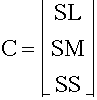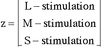 where SL, SM, and SS are the sensitivities of the L-, M-, and S-cones respectively. The "perceived signal" from each of the three cones can be written as a 3x1 vector