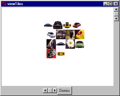 Clicking "find" opens a file selection dialogue, so that the user can select which image they want to use for their mosaic. Clicking "view" opens a scrollable canvas upon which are displayed all of the tiles from the tile image directory. Here is what that window looks like: