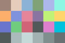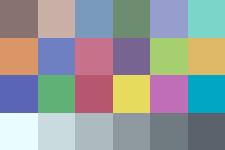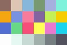 Now, to further isolate the effects of possible Gray World enforcement, I decided to alter the Macbeth ColorChecker by taking out the top three brightest color patches and replacing them with darker patches. The patches with the highest luminance values were found and then replaced by either (0,0,0) or darkened with a factor of 0.4. I found that surface 16, 19, and 20 had the highest luminance, with values of 62.6682, 96.0867, and 65.7920, respectively. Thus, I decided to black out surface 16 and 19, and darken surface 20 with a scale factor of 0.4. The reason that surface 20 was not blacked out as the others is because I wanted to provide a differentiable level of color contrast between adjacent color patches. Since surface 19 and 20 are adjacent, they cannot have the same RGB values. The MATLAB Script generateMB2.m was created to perform such a task. Once the high luminant surfaces were darkened, I used my Matlab script, GWbalance.m, which takes in an indexed image, to enforce the Gray World assumption on this image. This image is the final input to the camera and the results are shown below.