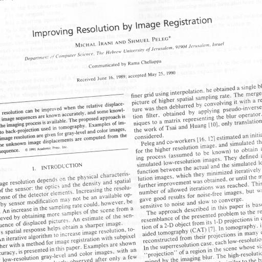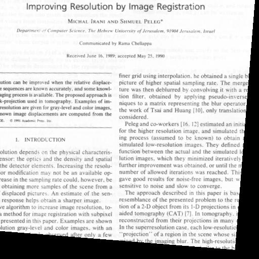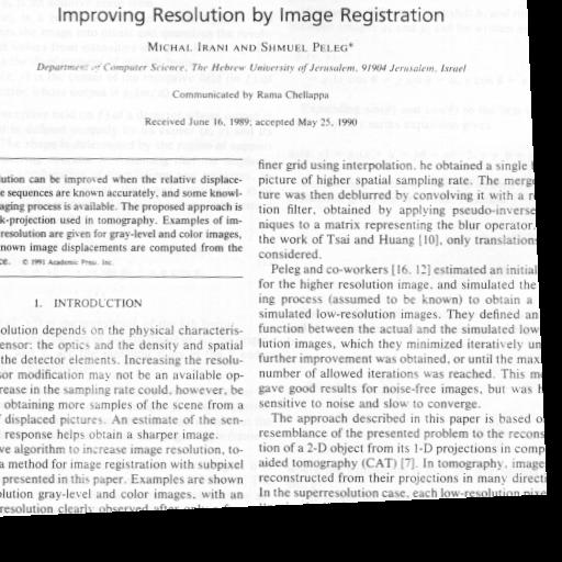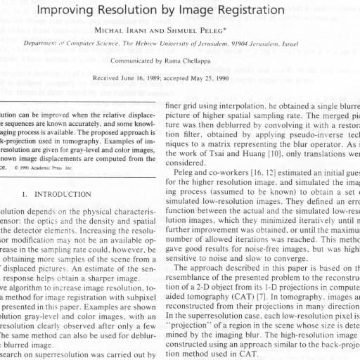 Given a set of images of unknown origin, meaning that the viewpoint and perspective of the image sensor is not known or imprecise, the reconstruction algorithm has to start with image registration. Image Registration is the process of finding the relative orientation of each image in the set to a reference image or coordinate system. In order to solve the registration problem (in general), motion estimation is required. Several methods for Image Registration have been developed.