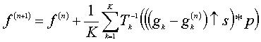 where K is the number of low resolution images (arrow) an upsampling operator by a factor s and p is a back projection kernel determined by h and Tk . Taking the average of all discrepancies has the effect of reducing noise.