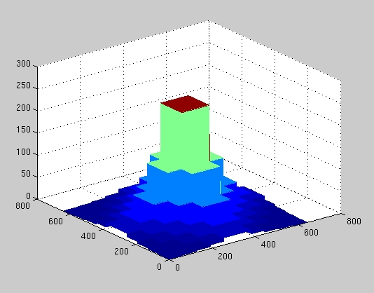 Figure 3 shows a plot of the shape of the fovea used in the producttion of figure 2, with 2^level weighting.