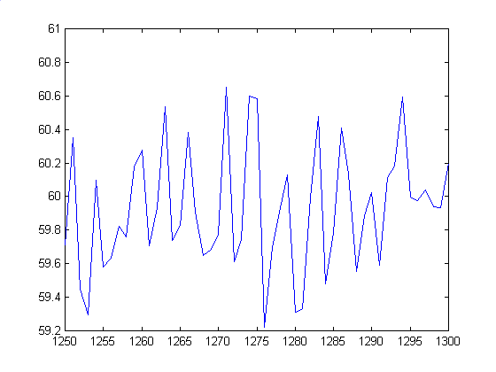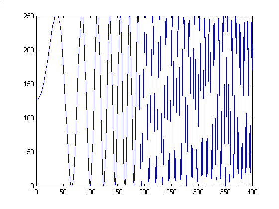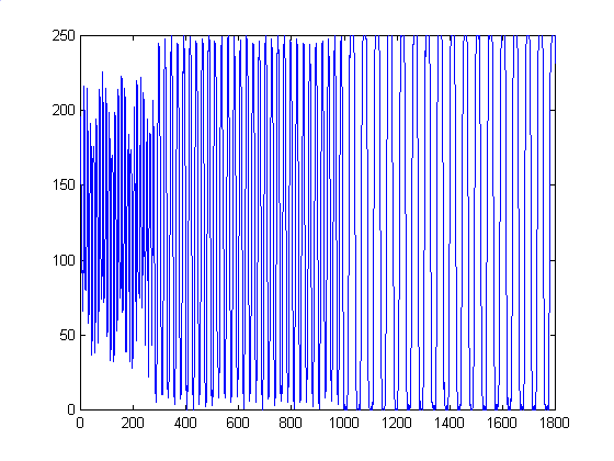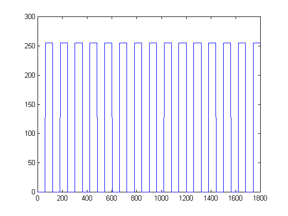 Checkerboard with 60x60 pixel squares - We took a cross section at an arbitrary row of the image, and plotted that.