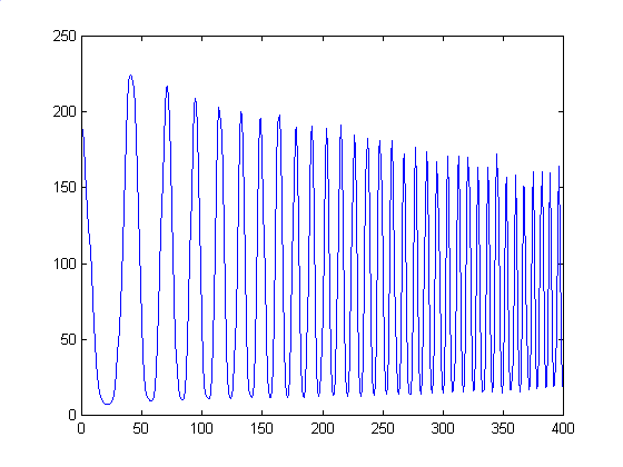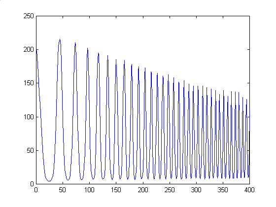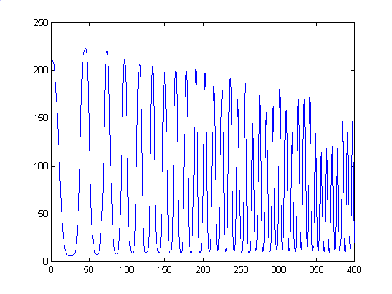 For this image, the original test pattern was primarily just a sinusoid that increased in frequency as we move from left to right. Interestingly enough, though, we got aliasing on our own monitors when we zoom out the 1200x1800 image to about the size of a photograph. Taking a cross section of each from the center row of each image yielded the following plots. We add in a plot of the first 400 pixels, to show the general progression. Plots of the rightmost 400 pixels, where most of the aliasing occurred, was very hard to make, since the intensity of the image shifts every pixel from light to dark, leading to very spiky images. Also, inherent flaws in the test image make it hard to make conclusive judgements about the accuracy of the reproductions.