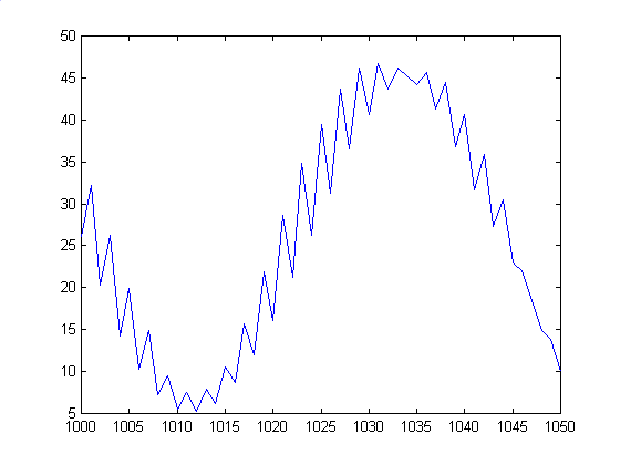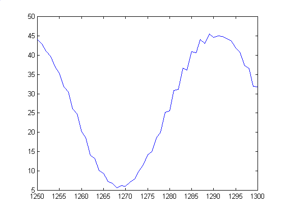 45 Degree Sin Pattern - For this, we just took a cross section of the image at a row 500 pixels down for each scan.