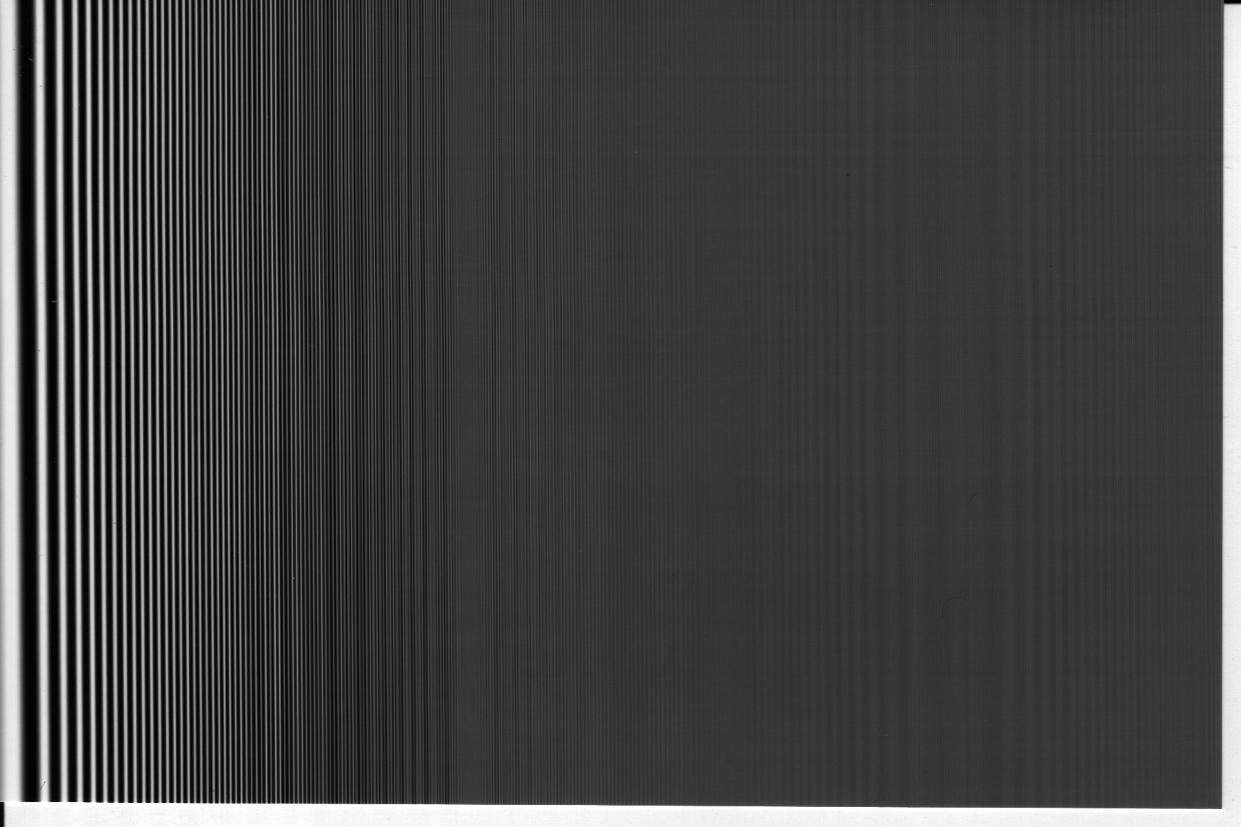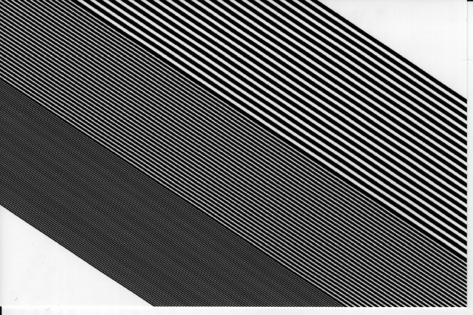 After seeing our results with the 45 Degree Sin Pattern, we expected consistently accurate reproductions of all our angled test patterns. The results from these scans confirmed that as well. Pictures in general were quite good, especially at the lower frequency end. Though some pictures got a little blurry at the higher frequency end, we saw none of the aliasing and random banding we found in the horizontal sin and rect functions.