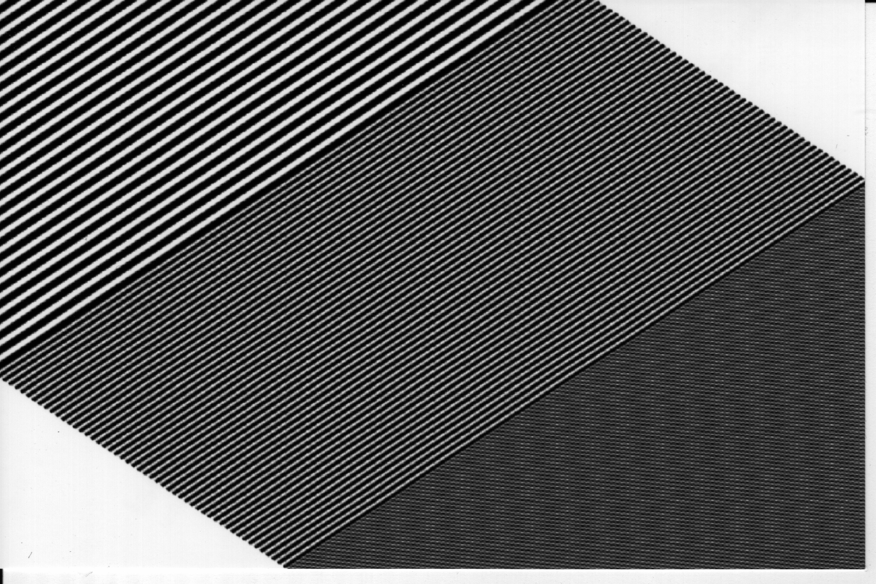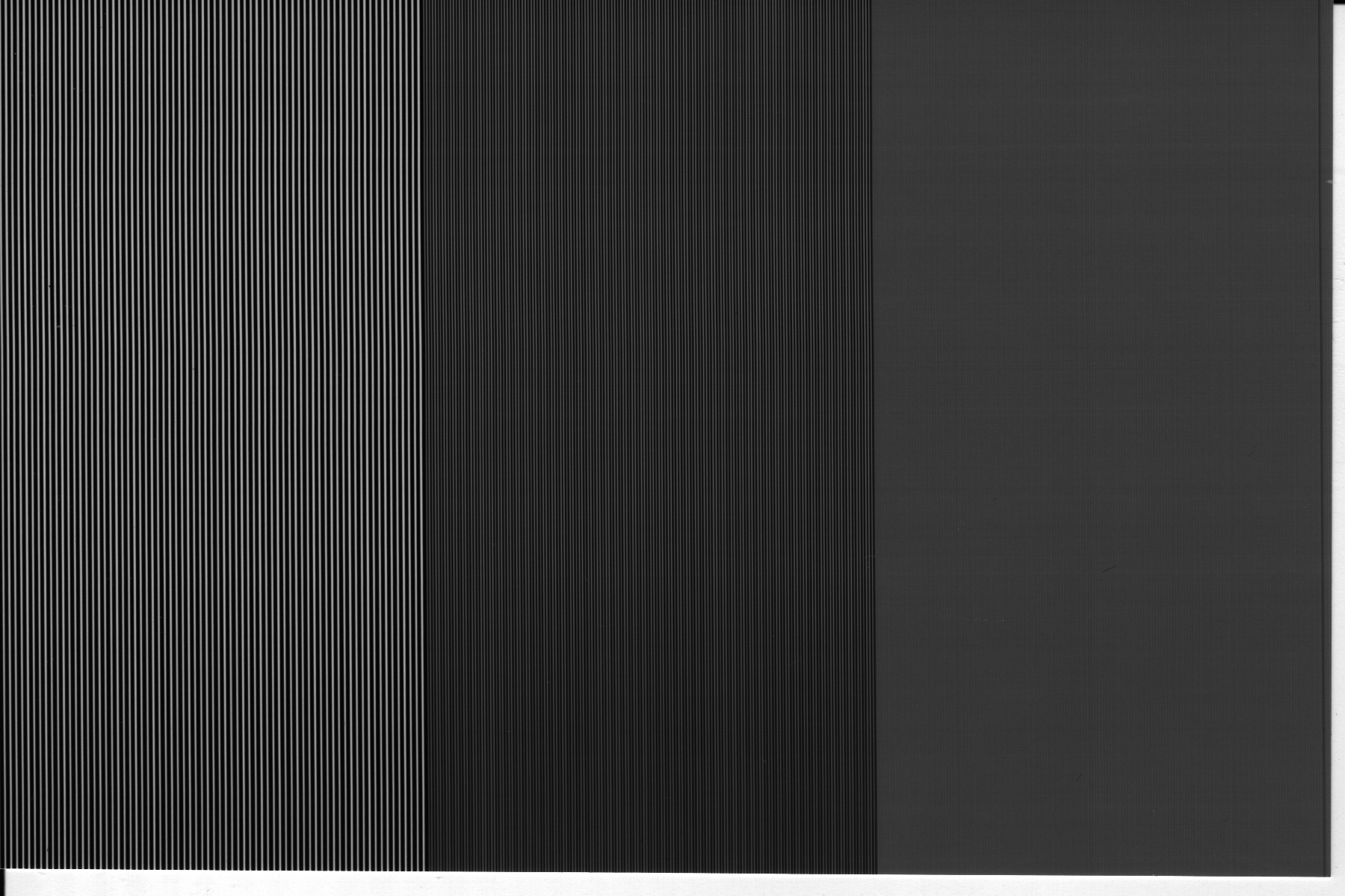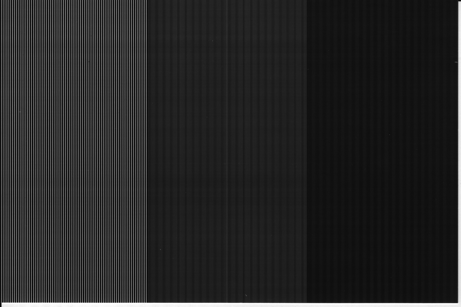 Average of Horizontal and Vertical Rect Patterns and B&W Combined Patterns - We could not think of any easy way to study these quantitatively. The photos we got were noticeably darker than the test image, and they were darkened even more by the scanner. We did make some qualitative judgements on the images, however.
