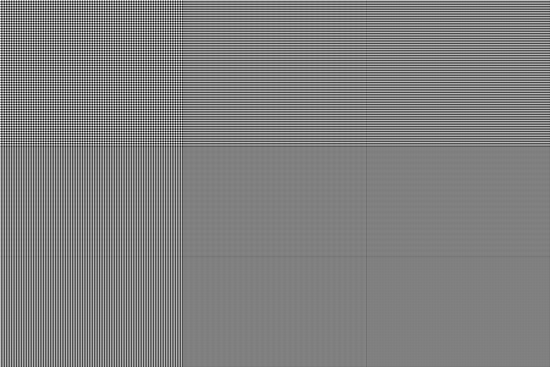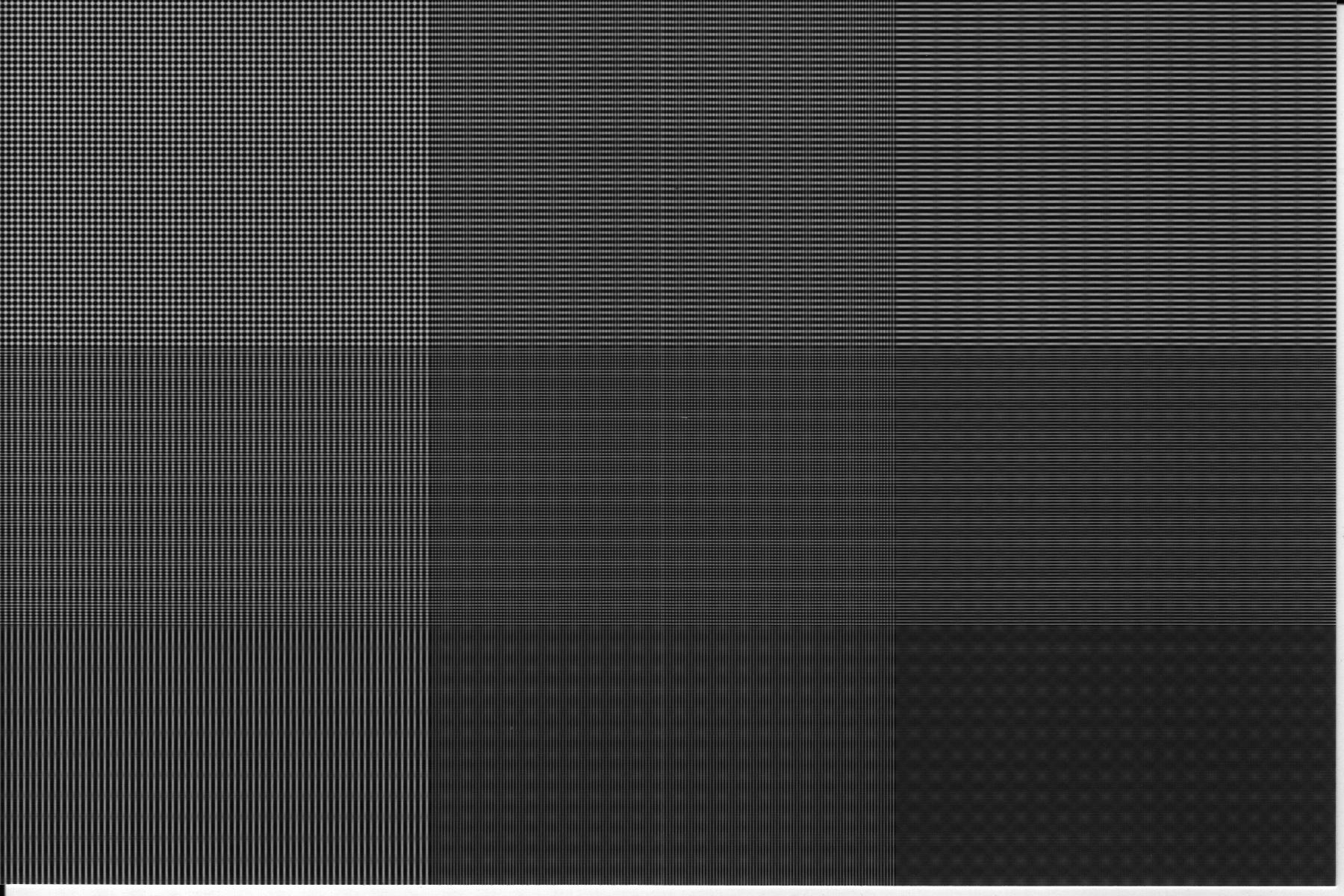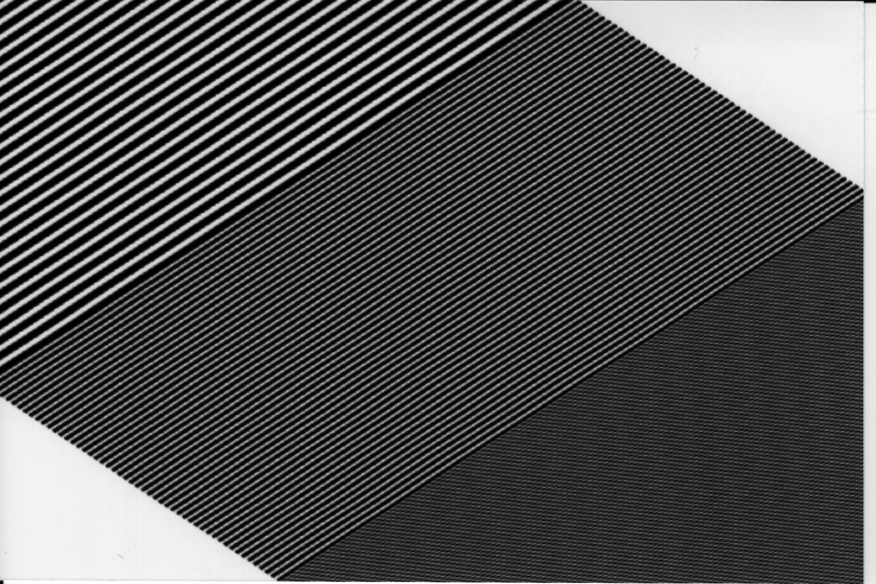 Average of Horizontal and Vertical Rect Patterns and B&W Combined Patterns - We could not think of any easy way to study these quantitatively. The photos we got were noticeably darker than the test image, and they were darkened even more by the scanner. We did make some qualitative judgements on the images, however.