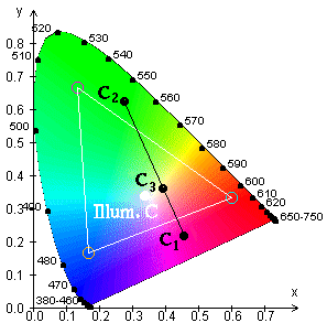 as the input source. We measured the xyY values of these colors for all