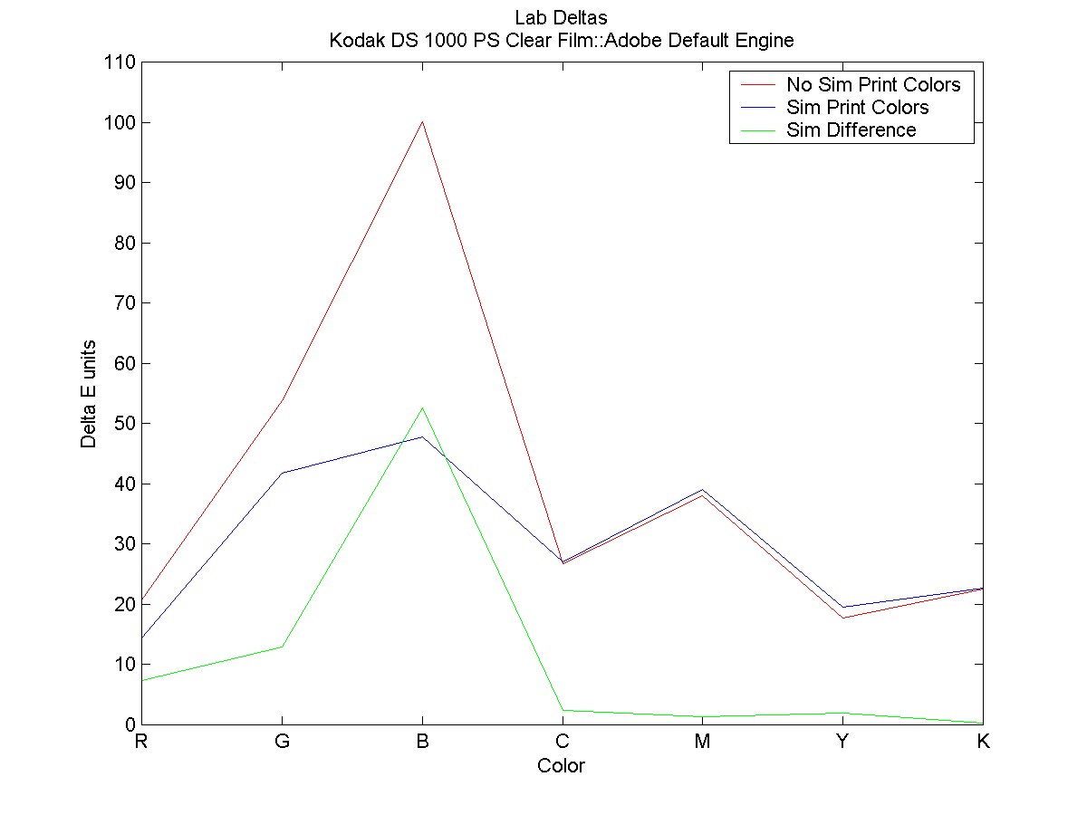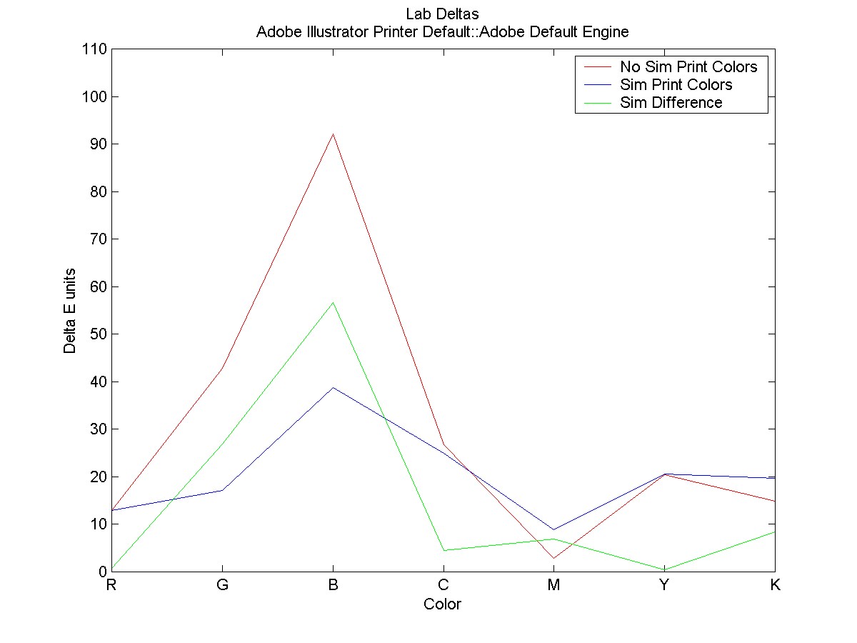The Green plot shows the difference between monitor color values with and without simulated printer colors.