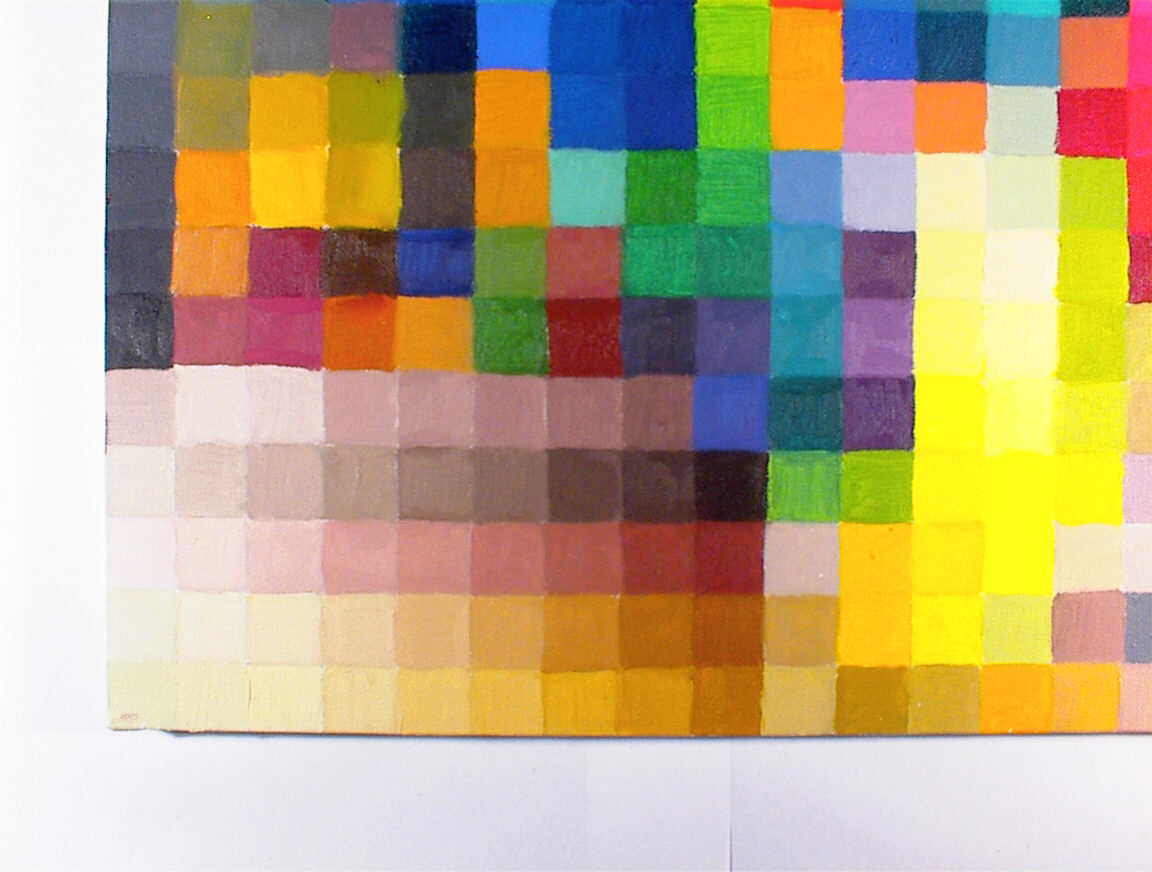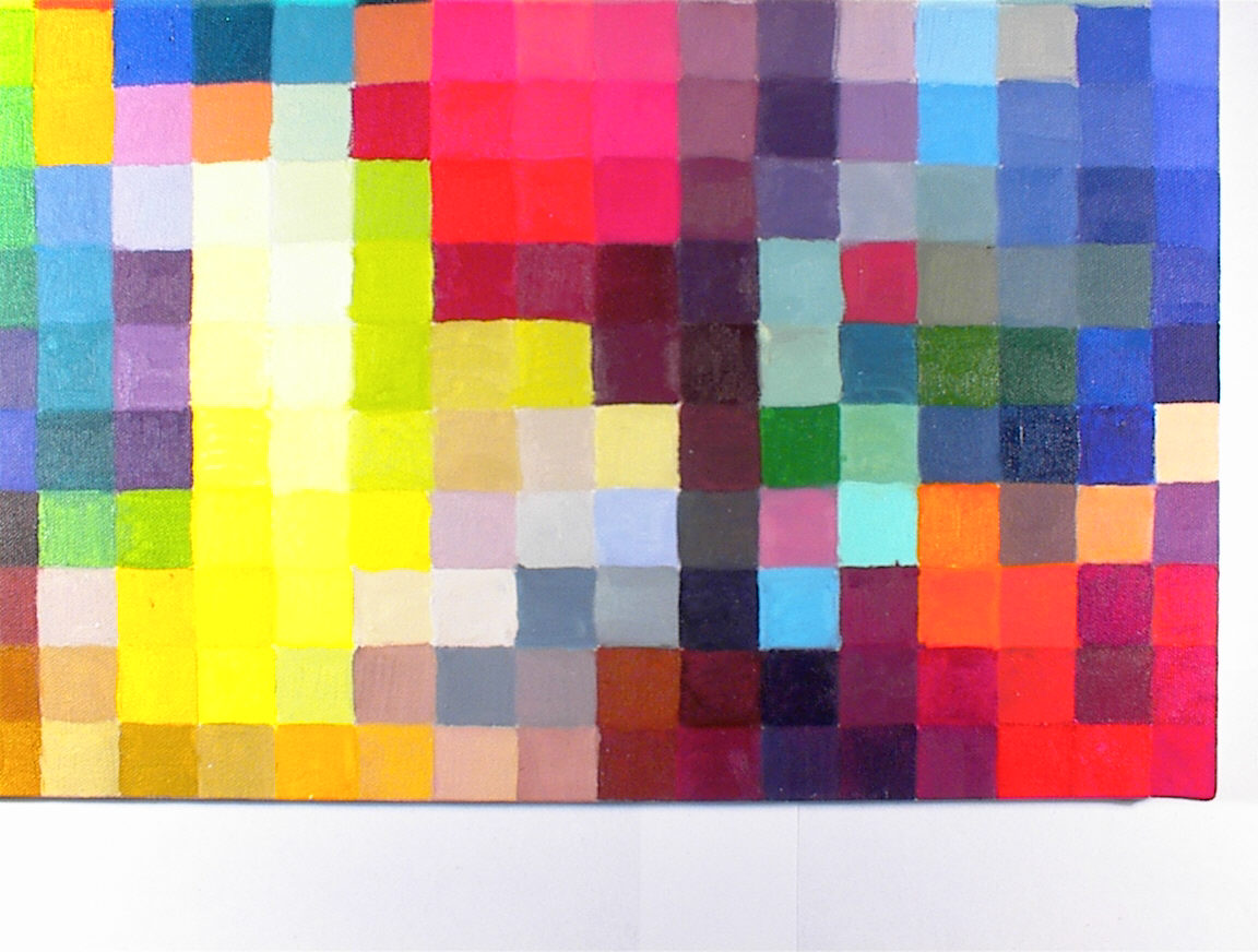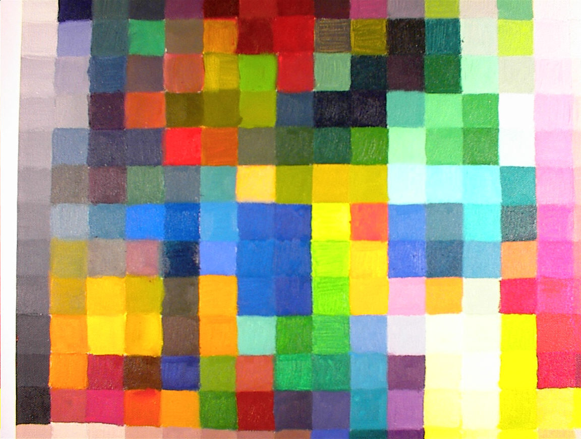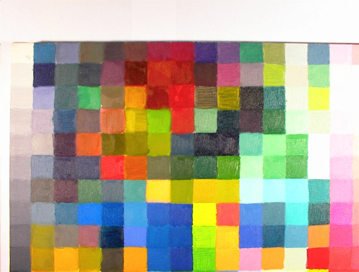 A system such as VASARI , with its exact registration, can easily take many sub-images of a painting, for which the exact coordinates will be known. In our implementation the painting was repositioned by hand, limiting the number of sub-images we could feasibly take. For our first attempt at archiving, we took four sub-images of the painting with approximately 2 inches of overlap on each side between them. This proved to be not nearly enough for our mosaicing software. We next tried a 3 by 3 set for a total of 9 subimages. These overlapped by nearly 50 percent on each side between them, and worked much better with the software. We also tried a 4x4 set of 16 images, but there was no visible improvement over the 3x3 set. We therefore used the 3x3 set for the rest of the manipulations.