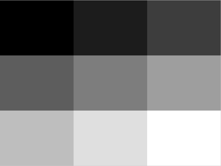 1. Generate a GrayPatch image with nine gray levels that evenly distribute from 0 to 256 by GrayPatchFun.m.