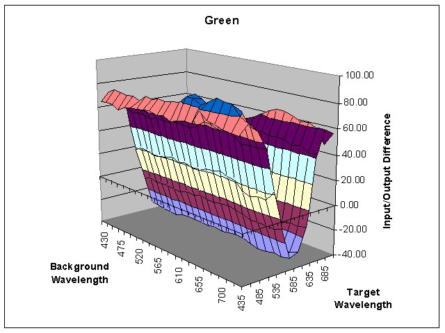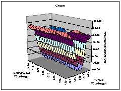 by over 200. The Green values, however, remain fairly constant with respect to the changes in the
