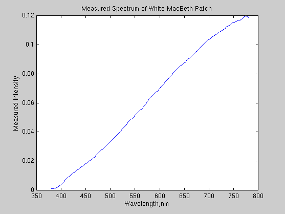 This next plot shows the measured spectrum of the white MacBeth patch,