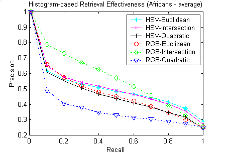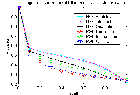 Figure 8. Histogram-based Retrieval Effectiveness (Africans) Figure 9. Histogram-based Retrieval Effectiveness (Beach)