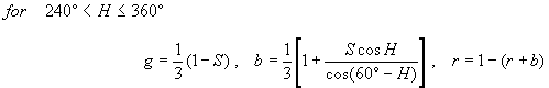 Conversion from HSV space to RGB space is more complex. And, given to the nature of the hue information, we will have a different formula for each sector of the color triangle.