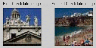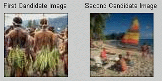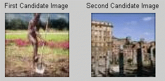 The image data used in this experiment were downloaded from a web site (http://wang1.ist.psu.edu/). Those were the same images used in SIMPLIcity[Wang]. However, in order to reduce the computation time of the whole process, only the first half out of 1000 images were used and their sizes were reduced to 64x64 pixels. Those 500 images have numbers as their names from 0 to 499 with JPEG-compressed for convenience and for saving storage. The original 1000 images has 10 categories (Africans & villages, Beach, Buildings, Buses, Dinosaurs, Elephants, Flowers, Horses, Mountains & glaciers, Food). And this experiment uses only first 5 categories which have 100 images each. The category information is used in calculating precision and recall for a retrieval method.