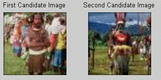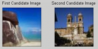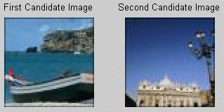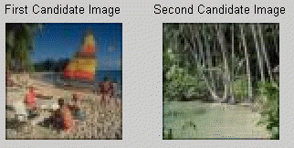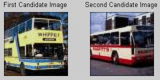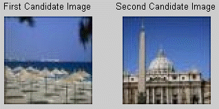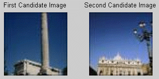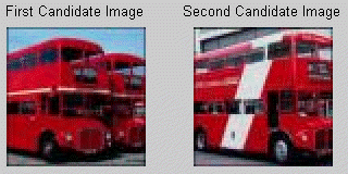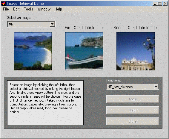 In the experiment, a image retrieval demo system in Figure 6. was built to test image retrieval efficiently. If the user selects an image in the listbox on the upper left side and chooses a retrieval method on the lower right listbox, by pressing 'Apply' button, the retrieval system finds the best two candidate images excluding the same image as the query image. Internally, it has information about all sorted indexes of images in DB in the order of increasing histogram distance. But, it shows only two best candidates. This system has also a function that show a precision vs. recall graph for an image regarding 6 histogram-based retrieval methods (3 distance measures in RGB and in HSV color spaces).