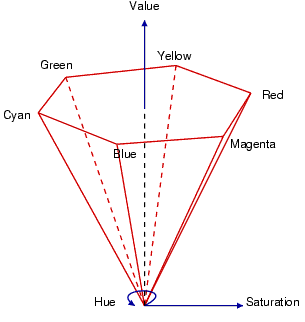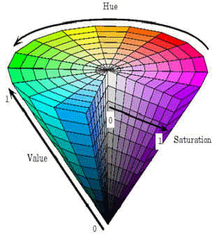 in a hexacone in Figure 2. (a). And Figure 2.(b) a view of the HSV color