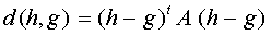 Let h and g represent two color histograms. The euclidean distance between the color histograms h and g can be computed as: