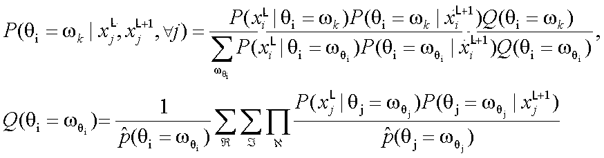 The Q function itself lacks a simple, intuitive meaning. If is calculated for every pixel in the image, at each level, and for each cluster. Rather, it is the term that contains all terms that are somewhat less intuitive. Referring to Equation 2, one can see that the basic input into Q is P(x|theta), as described above, multiplied with the final probabilities from the previous level.
