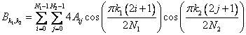 where N1 is the image block width (8 in this case) and N2 is the image block height (also 8 in this case). The quantizer weights the various spectral coefficients according to their importance, with respect to the human visual system.