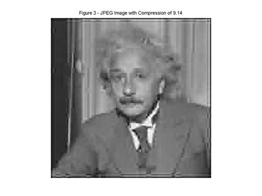 Though JPEG images can be indistinguishable from the source image at a compression ratio of three or so (for color images), the standard has significant problems at high compression ratios. Figure 3 shows a JPEG image with a compression ratio of 9.14.