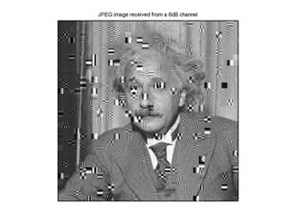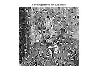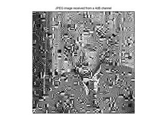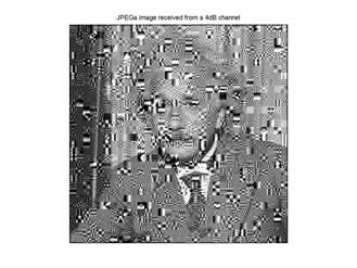 While it may be instructive to simulate the transmission of other, more controlled, test patterns, the computation time to do so is prohibitive in this case. It is evident, however, from Figure 11 that the JPEGa scheme has something to offer the world of wireless transmission of visual information.