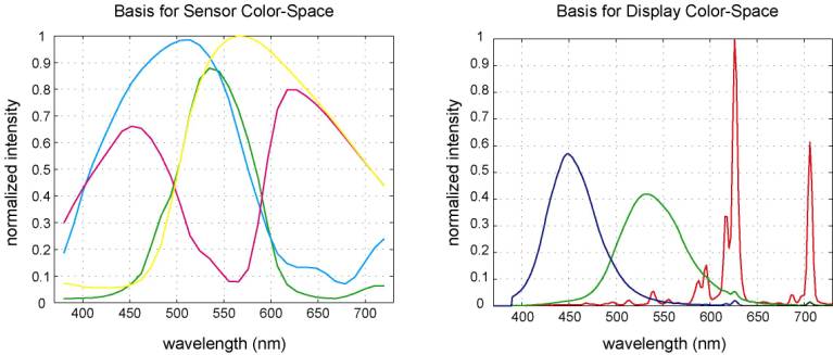 can be either sensor RGB to display RGB, or sensor CMYG to display RGB (see