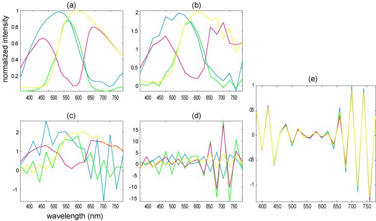 simulated CMYG sensor measurements with responses shown in Fig. 3, (d) actual CMYG sensor