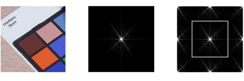 Spatial-Frequency Spectrum in Fourier-space: (left) original image in