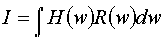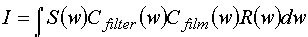 R(w) is the reflectance of the object and is the quantity we are attempting to capture in taking the image. H(w) is an effective transfer function. It is a combination of the spectrum emitted by the light source S(w), the transmission characteristics of the camera filter Cfilter(w),and the film sensitivity Cfilm(w). We assume that the rest of the camera optics is constant, and hence effectively unity, with respect to wavelength. Expanding out the intensity: