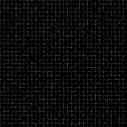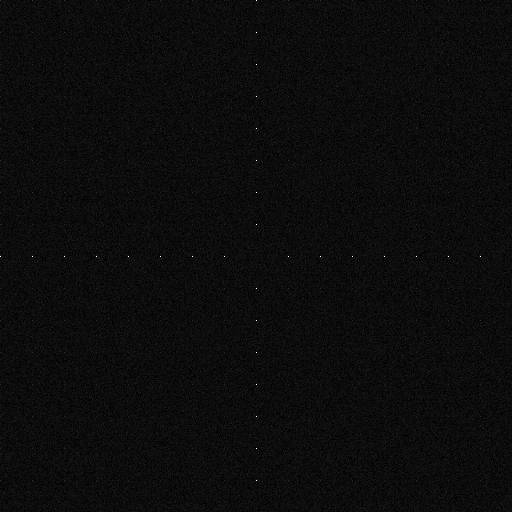 The image of the noise variance does not show any particular spatial structure, but the 2D FFT of the noise contains an interesting feature. There is a distinct, periodic pattern of peaks along the vertical and horizontal center axes of the FFT. These peaks correspond to artifacts along an 8x8 grid in the image. To demonstrate this, we generate a pattern of random noise along a grid with 8x8 spacing, using a matlab script: