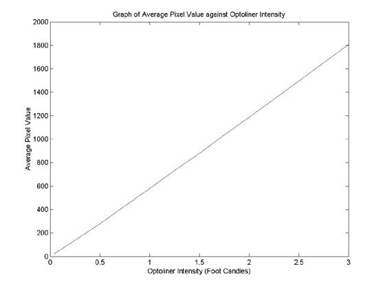 Figure 2. Graph of Average Pixel Value against Optoliner Intensity