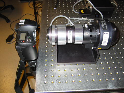 We verified that the pixel values obtained in the raw data was linear with light intensity falling on the sensors by placing the Nikon D70 with the lens removed in front of the optoliner. We used a light collimator to focus the optoliner light, producing a circular region of light on the image.