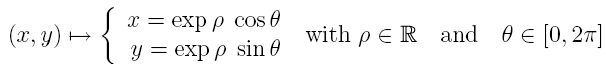the use of a log-polar mapping in which the rotation of any element (x,y) in cartesian coordinate