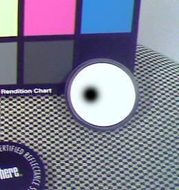 As we said above, the spectrophotometer produces 101 data points per surface with low resolution. A modern digital camera, on the other hand, has much higher resolution—in the simulated spectrophotometer above, the black spot takes up many pixels.