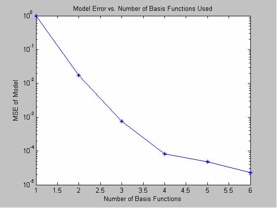 Figure 1.6: Mean Square Error Between Estimated and Measured Radiance Spectra vs. Number of Basis Functions