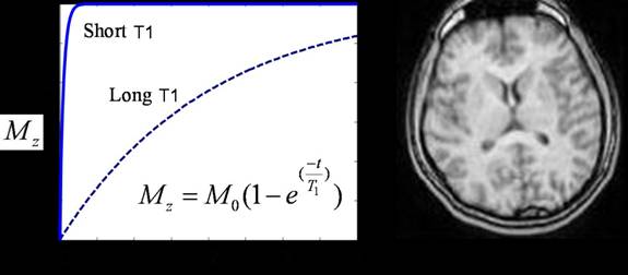 Figure 7. Illustration of T1-weighted contrast. Tissue with a short T1