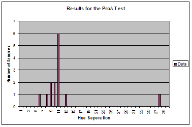 Lower scores represent better color vision capabilities, the DeuA and DeuB trials test the medium wavelength color receptor, and the ProA and ProB trials test the long wavelength color receptor.