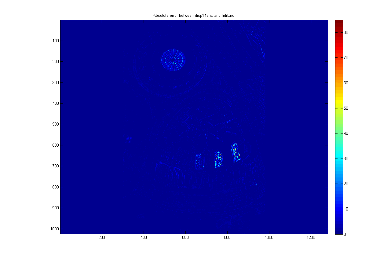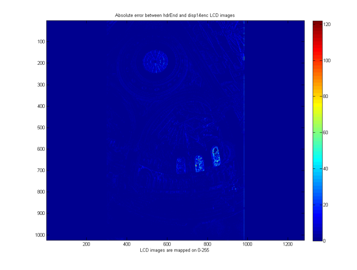 Finally, the next plot shows the absolute error image of the two encoders' LCD images.