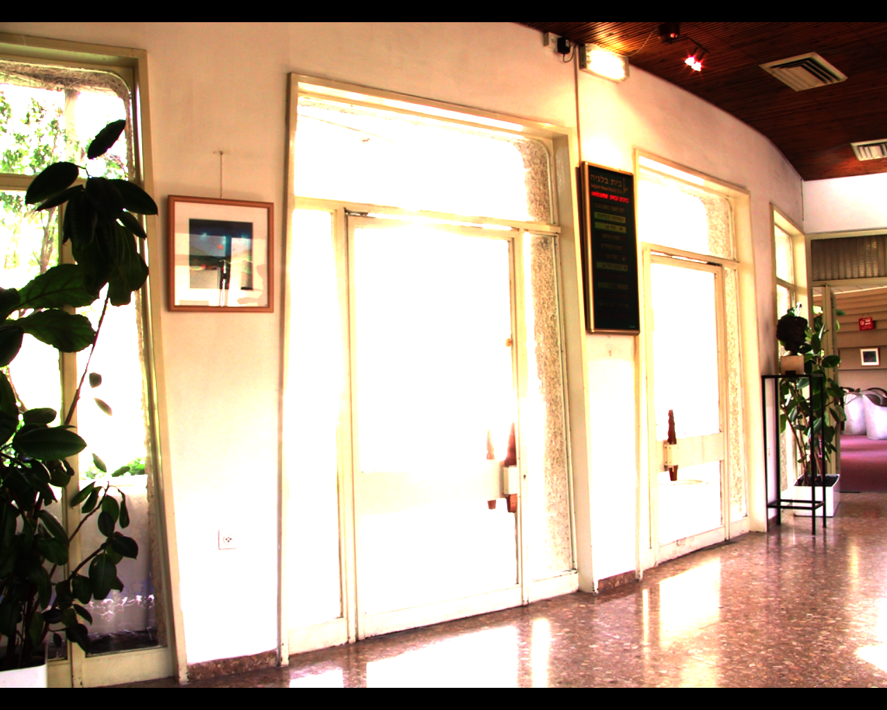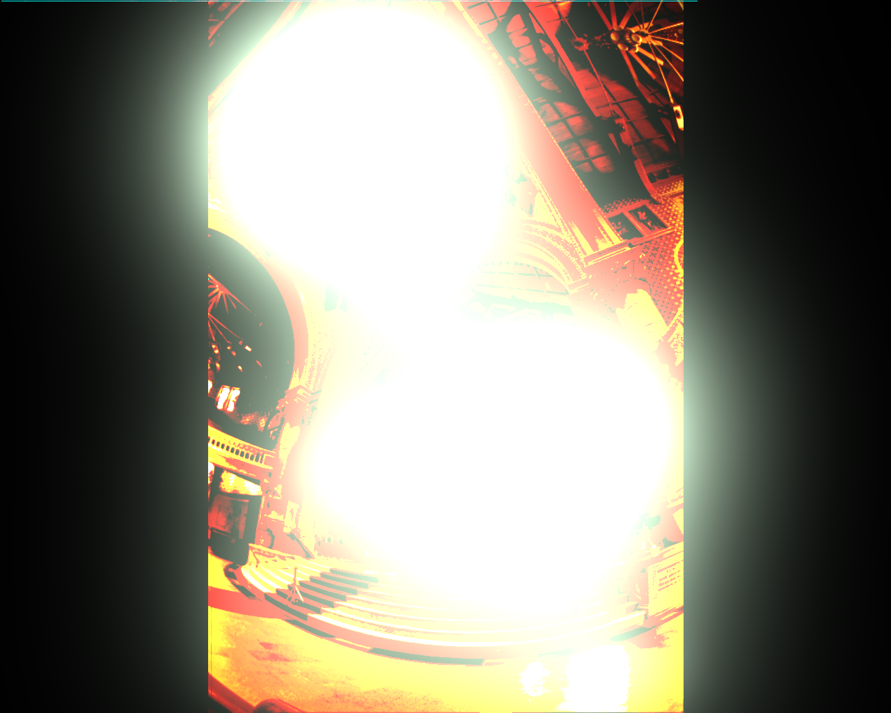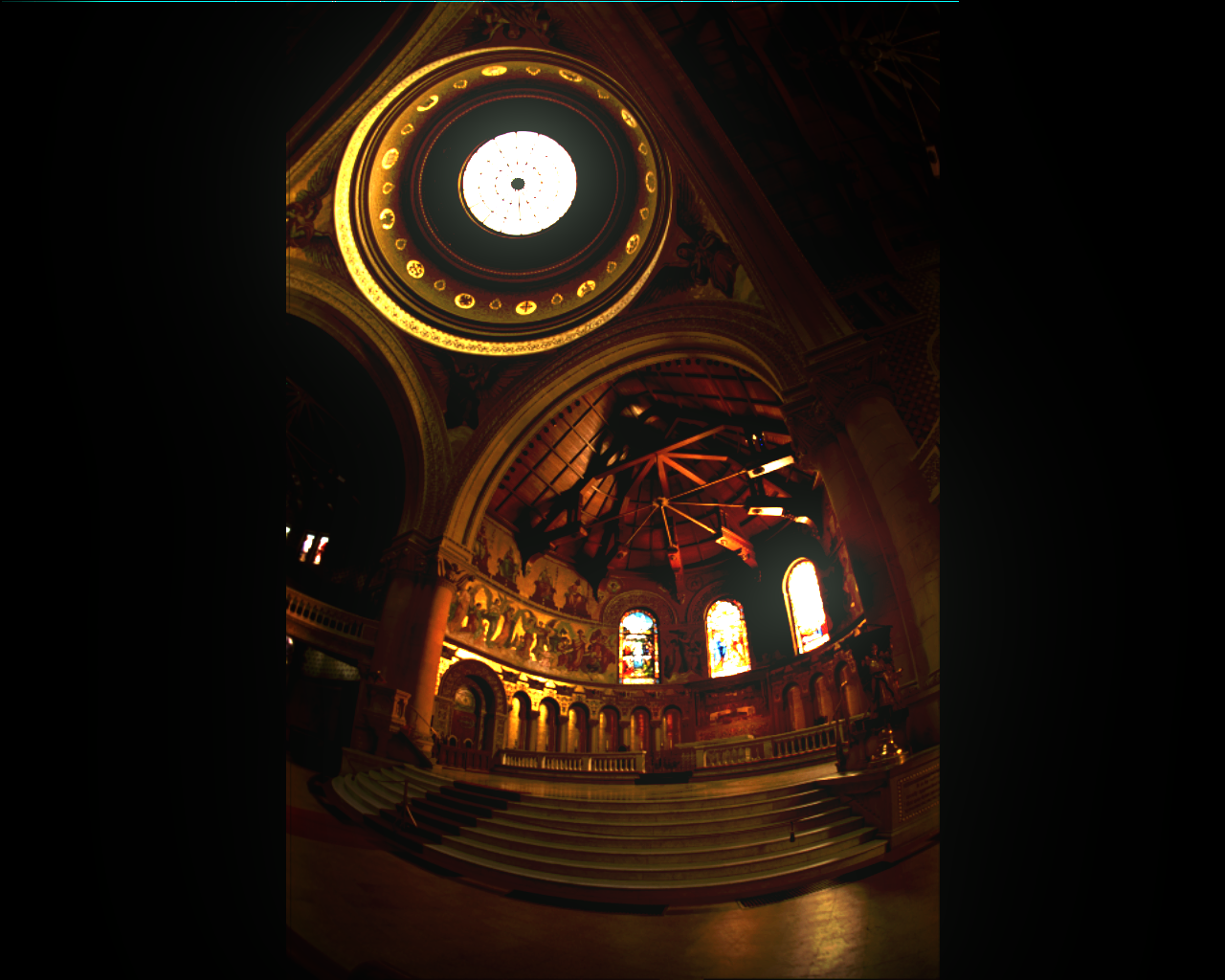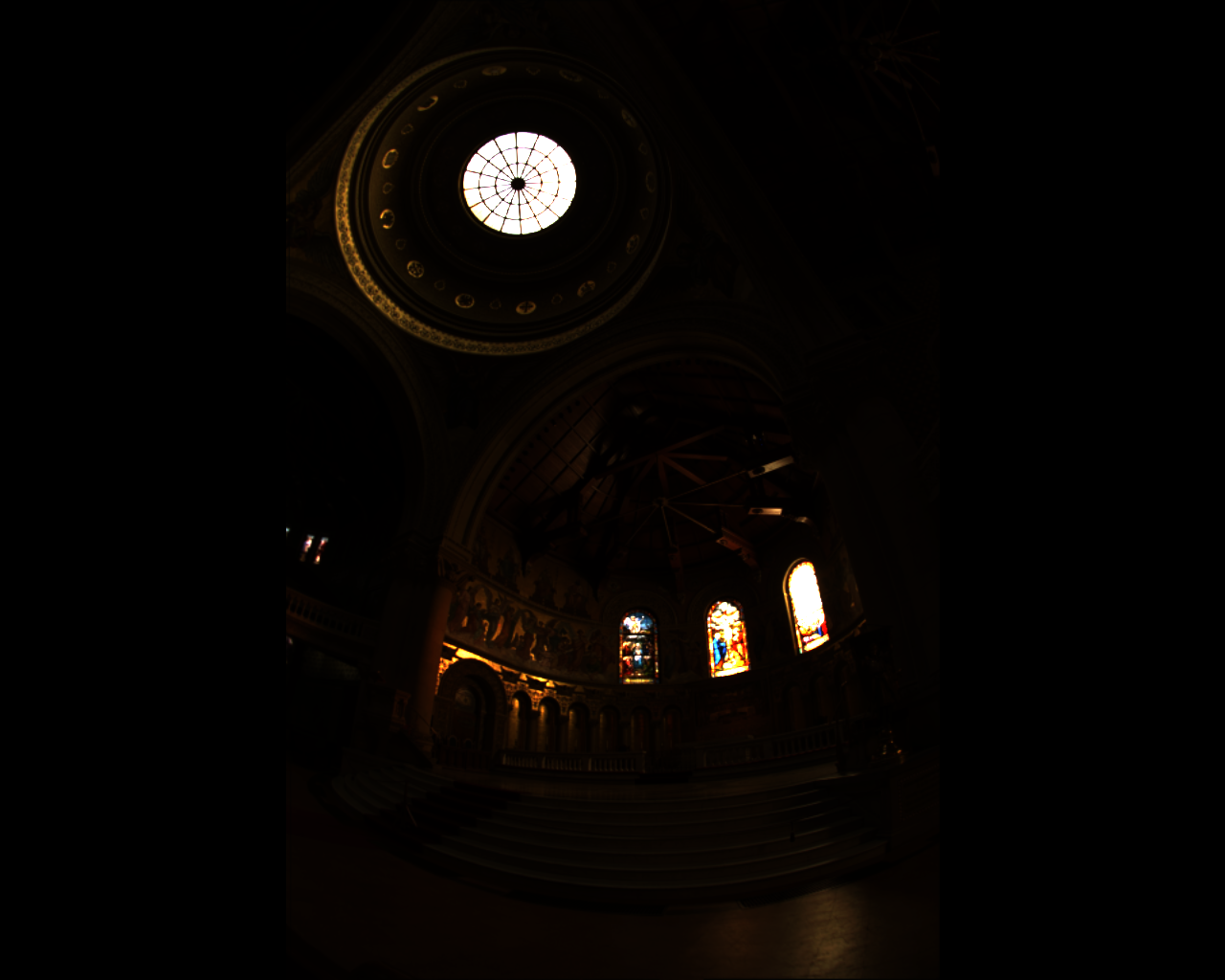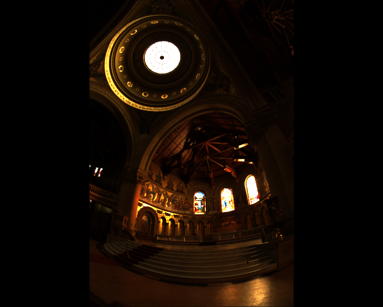 The error between the ideal and encoded images here becomes very large at both the skylight and the rightmost stained-glass window. These are the regions with the highest luminance, and it seems that it exceeds the dynamic range the encoders can successfully code for. Therefore, the error grows very large since the HDR display saturates at a brightness signficantly below what would be required to reproduce the actual dynamic range. This gives rise to a high average error (15.5 for CO, 46.79 for BS), but the median error is still very low (0.0021 for CO, 0.0054 for BS). With the final code, the CO encoder has both better mean and median error than the Brightside encoder,