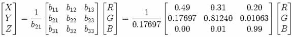 [.49, .31, .20; .17697, .81240, .01063; .00, .01, .99] * blue'