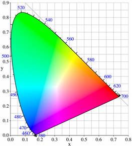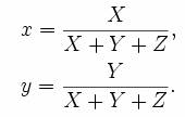As we learned from our Color Matching Tutorial, the chromaticity of a color is determined by two variables x and y defined by the following: